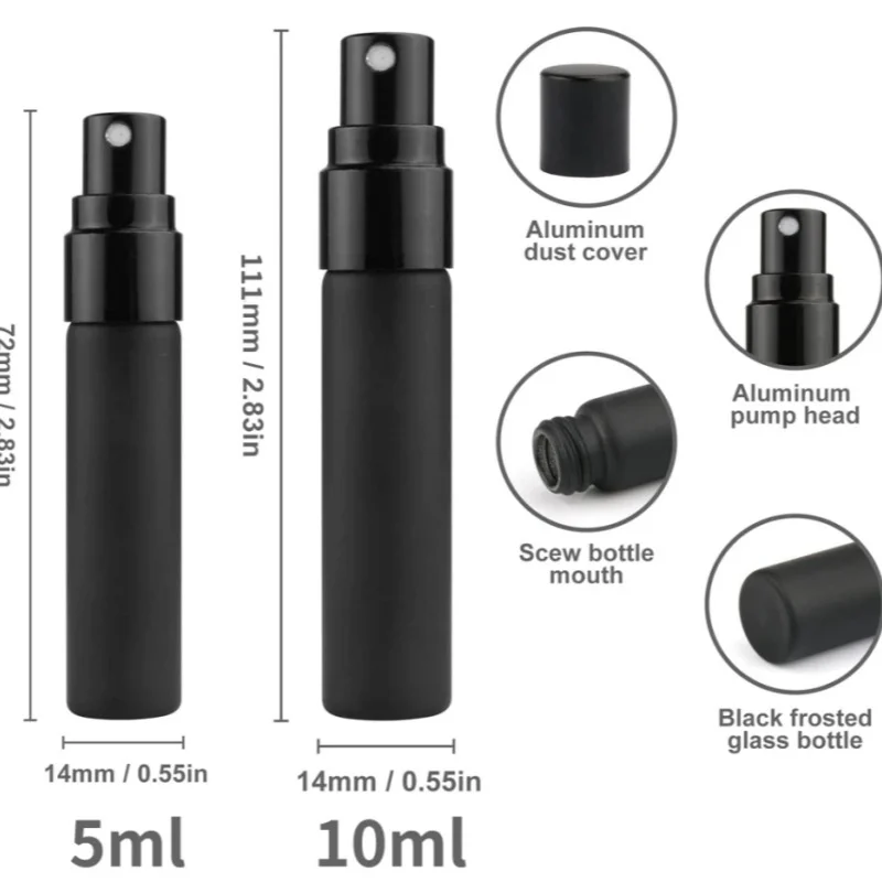 5/50/100PCS 5ml 10ml Black Perfume Bottle Perfume Glass Bottle Travel Cosmetic Tool Empty Cosmetics Bottle Sample Test Tube