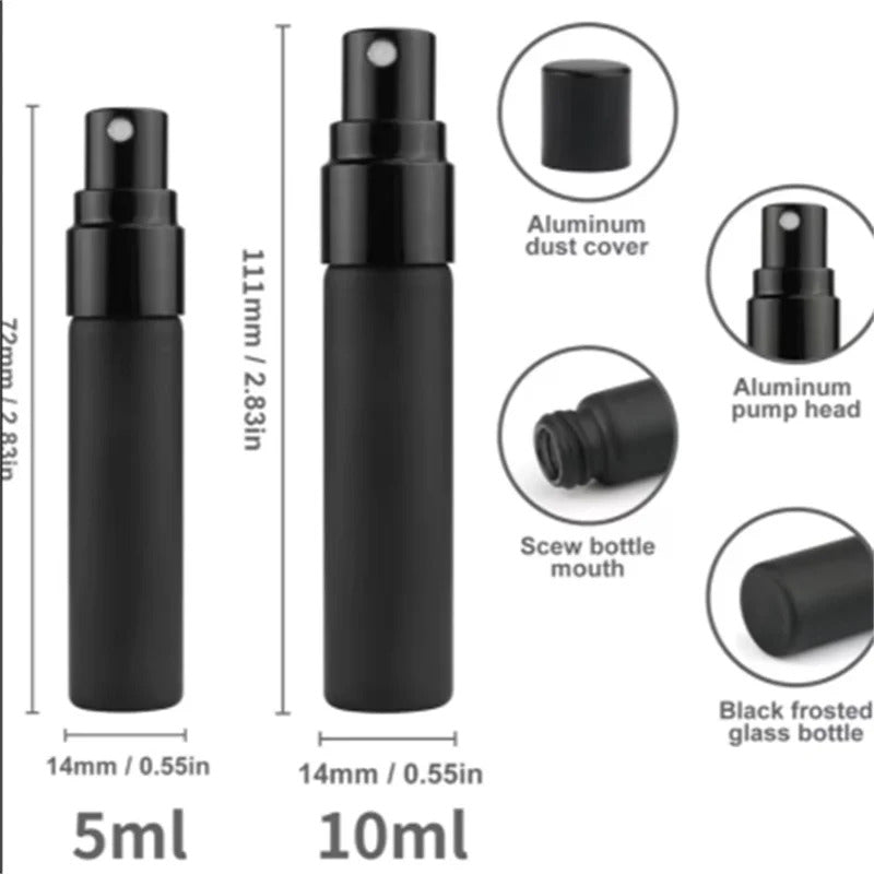 5PCS 5ml 10ml Portable Black Perfume Bottle Perfume Glass Bottle Empty Cosmetics Bottle Sample Test Tube Travel Cosmetic Tool